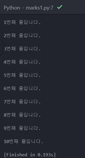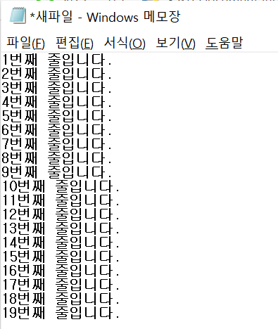 data = "%d번째 줄입니다.\n" % i