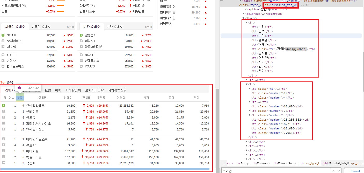 top10 영역 이외의 tr들도 함께 묶여있기 때문인데, 이는 분기처리를 통해 top10 값만 가져올 수 있다.