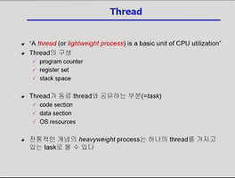 -컴퓨터 시스템 = (CPU + Memory) + IO Device + (각종 Controller, timer, buffer , , , 등등)input = IO 디바이스의 실행들을 컴퓨터 안으로 입력하는것.output = 메모리에서 처리한 데이터를 받아 다시 IO 디바이스로 넘기는것 CPU - 중앙처리장치로써, 메모리가 CPU를 점유하여 사용할 수 있다. CPU에서는 매 클럭마다 메모리의 인스트럭션을 읽어서 실행시킨Memory - 기억장치로, 실제 프로그램을 실행하는 영역, cpu를 이곳에서 점유하여 사용한다. 운영체제(OS)와 실행한 프로그램이 이곳에 있다.IO장치 - 컴퓨터가 요청한 내용을 입력하고나, 컴퓨터에서 요청된 내용을 보여주는 장치 CPU 안에는 Register과 Mode bit, inter..